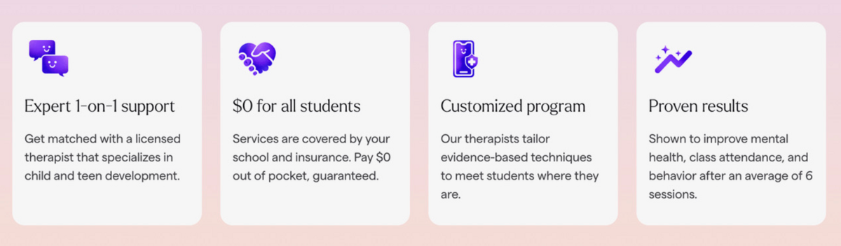 The Sulphur Springs Union School District is in partnership with Hazel Health to provide students access to licensed mental health therapists at no cost to families. Online therapy sessions are available either at home or at school.