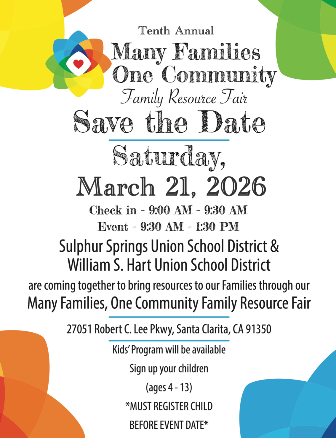 On Saturday, March 21st at Golden Valley High School, our District is joining William S. Hart Union High School District in hosting an exciting FREE Family Resource Fair for our community.