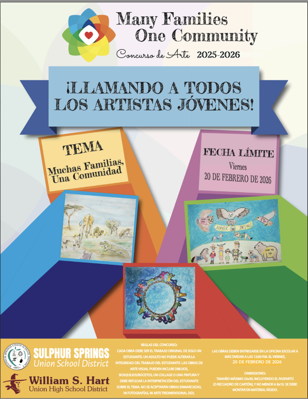 We invite all families to encourage their child to participate in our District-wide art contest with the theme “Many Families, One Community.” This theme celebrates the unique stories, cultures, traditions, and connections that make our school community strong and welcoming.
